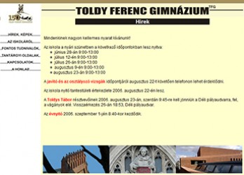 Murakeözy Gabriella, ex-toldys diák, aki ma már neves grafikai tervező, az iskola arculattervének részeként megalkotta a most látható honlapot – s a külalak mellett tartalmi szempontból is sok hasznos ötletet adott; a programozás feladatait ismét magamra vállaltam.