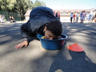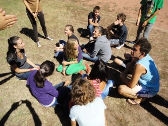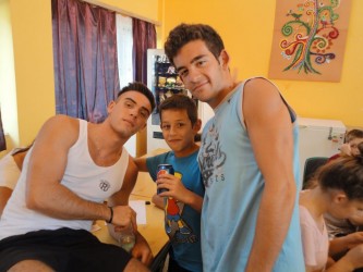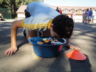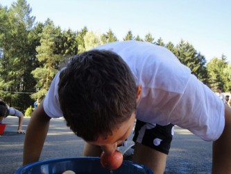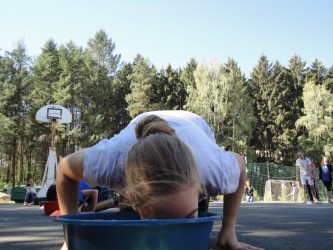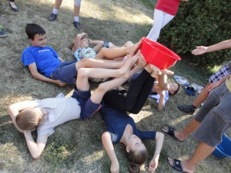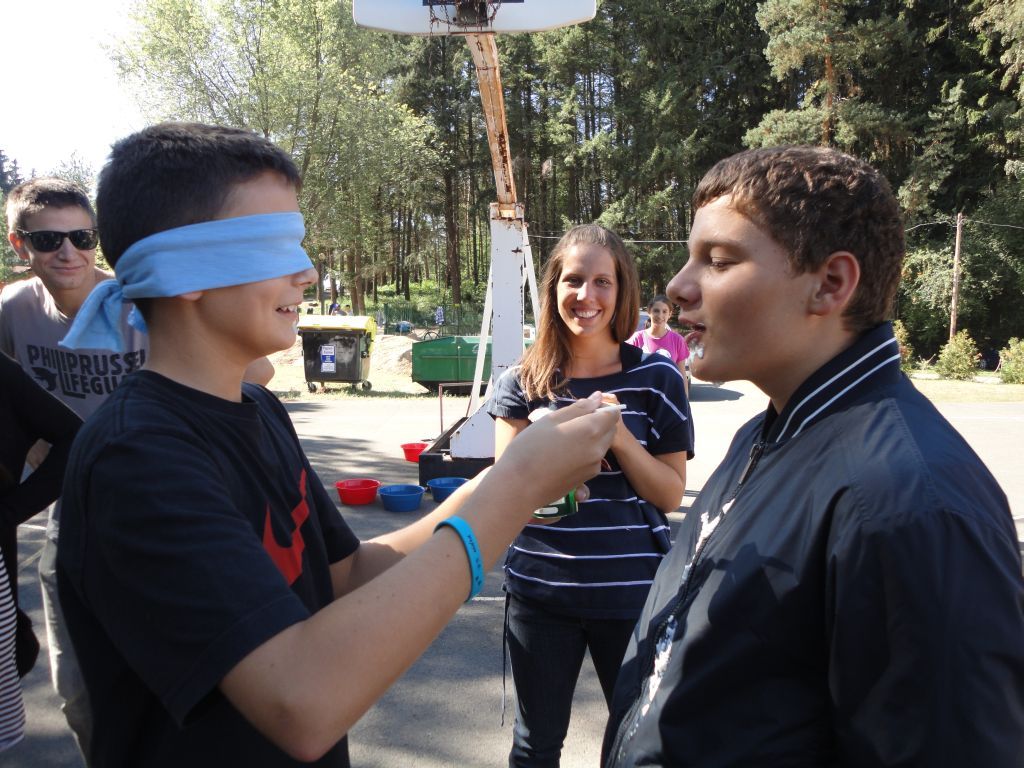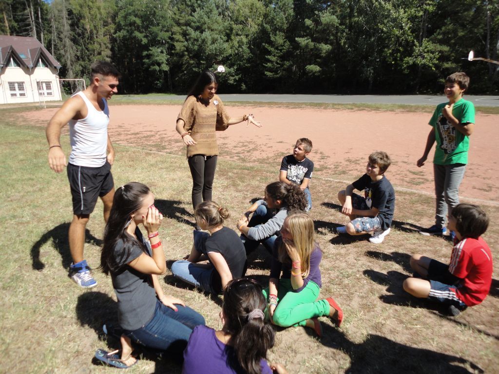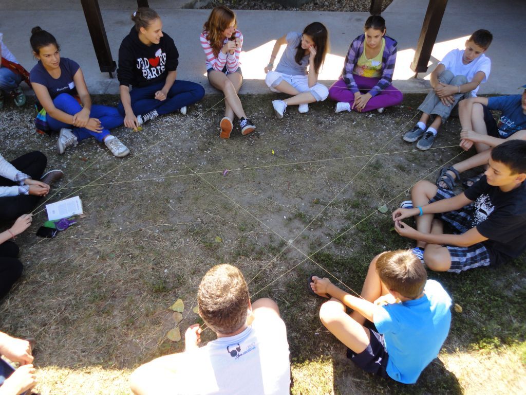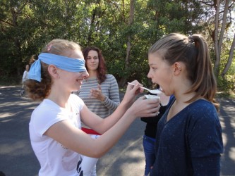 És még folytathatnám, hogy "a második napon az történt, hogy...", de ellenállok a kísértésnek, és próbálom rövidre fogni. A következő napokban annyi programon vettünk részt, hogy az kimerítette egy egész havi programszükségletünket. Meg persze, kimerített MINKET is, és erre még rátett egy lapáttal a reggel hétkor kelés, a néha fülünkbe üvöltő megafonnal, néha (és szerencsénkre általában) lágy gitárszóval. A programok között volt pl. számháború az erdőben, sportversenyek, éjszakai bátorságpróba, görög mitológia előadása sci-fiben, musicalben, esetleg talkshowban (nem vicc, volt szappanoperában is), ZTM (Zenés Táncos Mulatság)... Nekem például az is tetszett, amikor az A-s fiúk a B-sek ellen játszottak le egy focimeccset úgy, hogy a lányok közben mindkét oldalon pomponlányokként szurkoltak nekik, krepp-papírból készült pomponokkal, koreográfiával, biztató szövegeket kántálva. Jó, a végére már az egész átment egy "Pomponlányok harca-dologba"... :-)