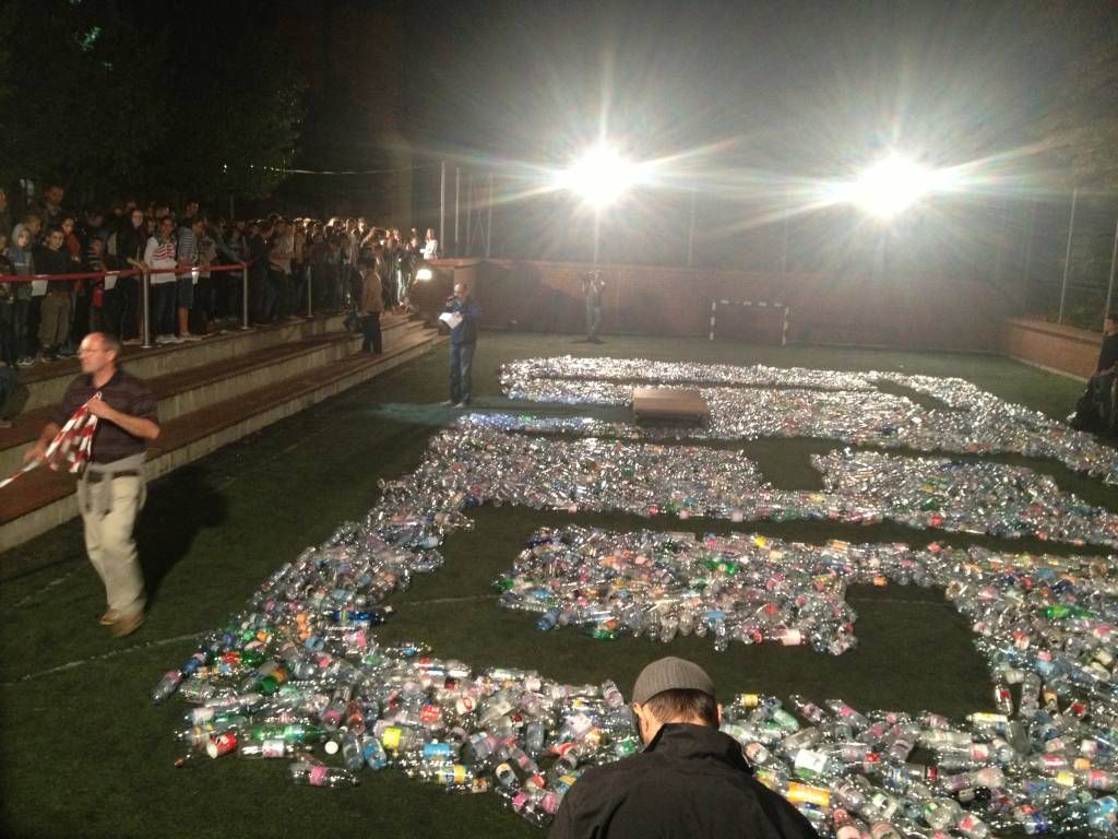 Persze akadt néhány érdekes ember, aki nem értette meg a feladatot, és vagy összetaposva, vagy félig tele dobta be a palackokat… De ezzel is megbirkóztunk! 77 zacskót sikerült megtöltenünk (természetesen itt nem kis nejlon zacskókra, hanem nagy fekete kukás zacskókra kell gondolnunk, ami elég szép eredmény).