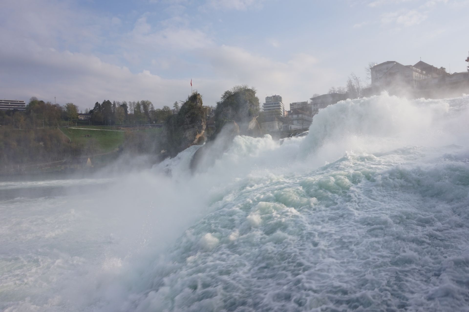 Szerda reggel a szokásosnál is korábban keltünk, és jól megpakolt táskákkal találkoztunk a winterthuri Hauptbahnhofon. Egy alig egyórás vonatút után megérkeztünk Európa legnagyobb vízeséséhez, a híres Rheinfallhoz. Először tettünk egy rövid sétát a helyi kastélyban a virágzó “fotogén tulipánfák” között, majd innen lépcsőztünk le közvetlenül a vízesés mellett egészen az aljáig. Ott a szokásos csoportkép is elkészült, majd folytattuk utunkat a közeli kalandparkig (a svájci tanárok örömére tartva a szuper lassú toldys tempót). Ott félelmeinket leküzdve, életünket kockáztatva másztunk, csúsztunk a csodálatos kilátás mellett. A bátrabbak még 30 méter magasról is leugrottak. A fárasztó napot még megkoronáztuk a winterthuri Kunstmuseum látogatásával. A nap végén mindenki fáradtan dőlt be az ágyába.