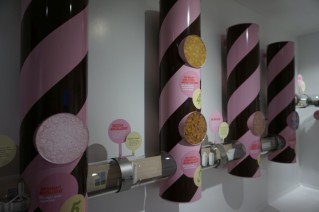 Nem bántuk meg a döntésünket, igazán kár lett volna, ha a csokoládégyárból pont a csoki marad ki. Bár anélkül is lenyűgöző volt: mozgó, kacsintgató festmények, ezerszínű szobák, oszlopok, candy cane alakú mosoly fényképezők, illatos játékok, tehénfejés-szimulátor, és persze maga a gyár rész, ahol megnézhettük, hogyan készülnek az életben a csokik, a különböző édességek, finomságok… Mint a mesében.
