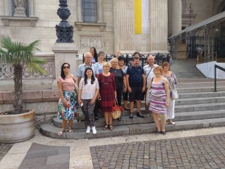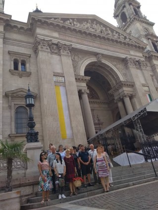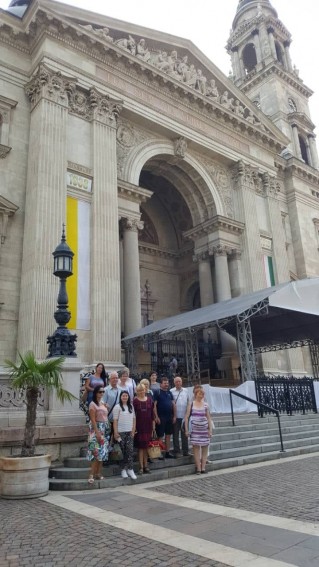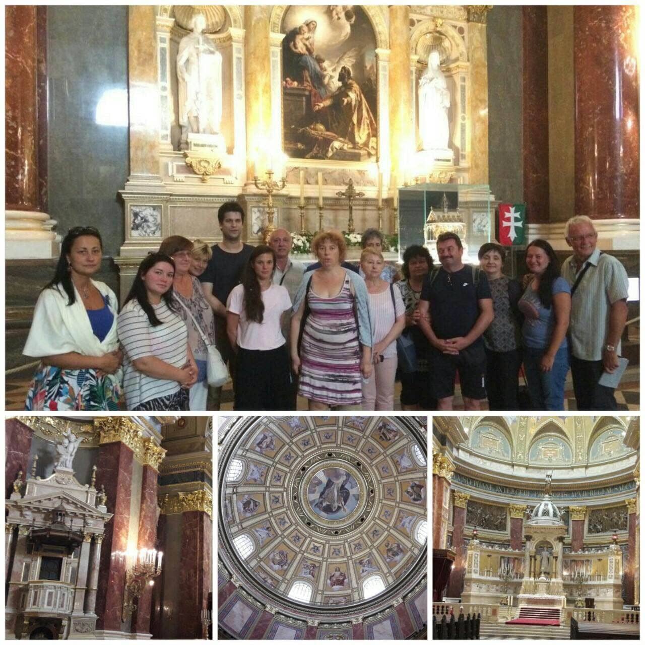 3. nap. A gimnáziumban elköltött reggeli után a Bazilikában tettünk mintegy háromórás látogatást. Szakértő idegenvezetőnktől mérhetetlenül sok érdekességet hallottunk. Mégpedig nem szárazon, adatokat gépiesen fölsorolva, hanem igazán élvezetesen, meseszerűen előadva. Lévén szó pedagógus látogatókról, a hölgy külön is ügyelt arra, hogy egy-egy gyerekcsoporttal kapcsolatos tapasztalatait is megossza velünk. Nemegyszer elképedve hallgattuk, egyik-másik történelmi eseménnyel, itt őrzött képpel, szoborral, más ereklyével kapcsolatban micsoda elképesztő, ugyanakkor igen logikus képzettársításokat hallott már a vezetőnk gyerekek szájából. A rövid orgonakoncertek még emlékezetesebbé tették látogatásunkat, melynek szerves részét képezte természetesen a Szent Jobb megtekintése is. Ugyanakkor volt bazilikabeli programunknak két meglepetés pontja is. Mert ahogy azt rá jellemző utánozhatatlan humorával Takács Zoltán kifejtette: „egy toldys mindent elintéz”. Ennek szellemében jutottunk el az altemplomba és a harangtoronyba is, ahova átlagos turista nemigen szokott bebocsátást nyerni.