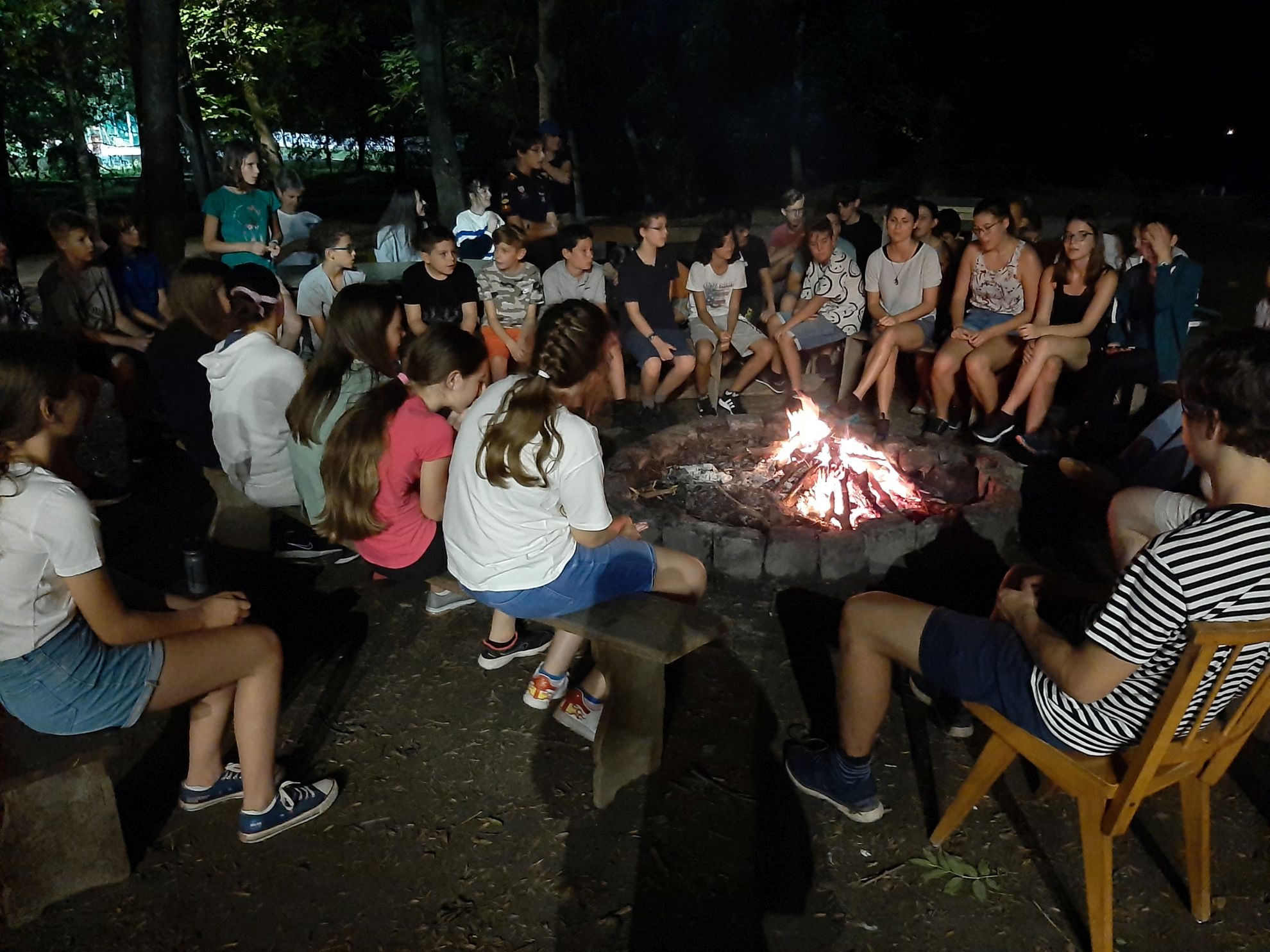 Na ne higgyétek, hogy itt véget ért a móka! Éjjel 2-kor ébresztettek minket, és vittek a sötét erdőbe egy kis ijesztgetős, előadásos túrára. Mit mondjak? Igazán félelmetesre sikeredett. Cserébe másnap jól kialhattuk magunkat.