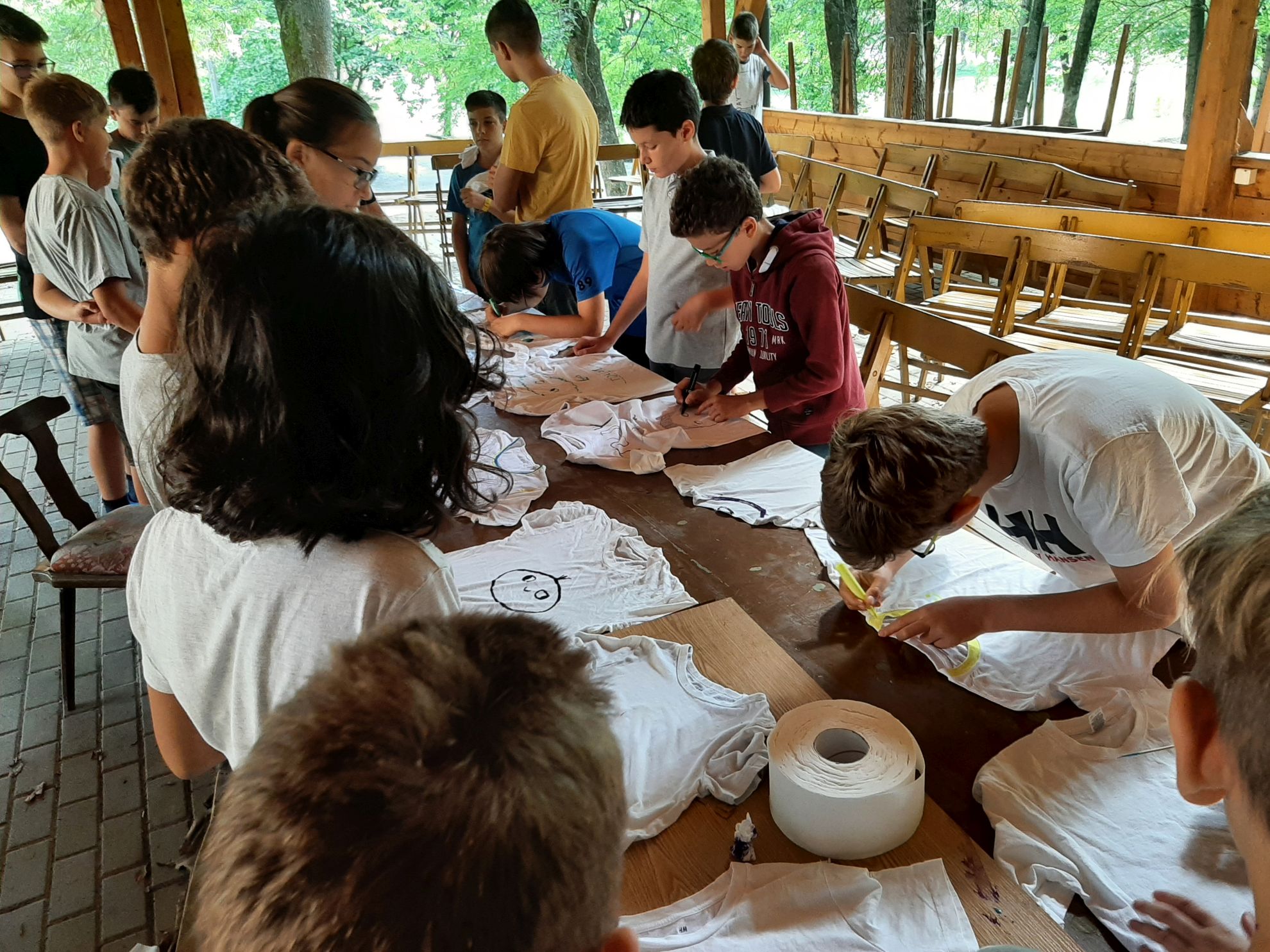 A másnap zenés ébresztéssel és reggeli tornával vette kezdetét. A tojáshajigálásnál minden csapatnak fél óra alatt egy olyan szerkezetet kellett összeeszkábálnia, amely magasról ledobva megvédi a tojást az összetöréstől. Festettünk pólót is, játszottunk beugrót, ebéd után pedig mindenki lepihent. Később megtornáztatták az agyunkat egy zenei kvíz keretében. A délutáni program osztályzászló készítéssel és számháborúval folytatódott. Volt lehetőségünk focizni és métázni is. Még tábortüzet is gyújtottunk, ami körül gitár kíséretében énekeltünk. Takarodó előtt ismét discoztunk egy kicsit.