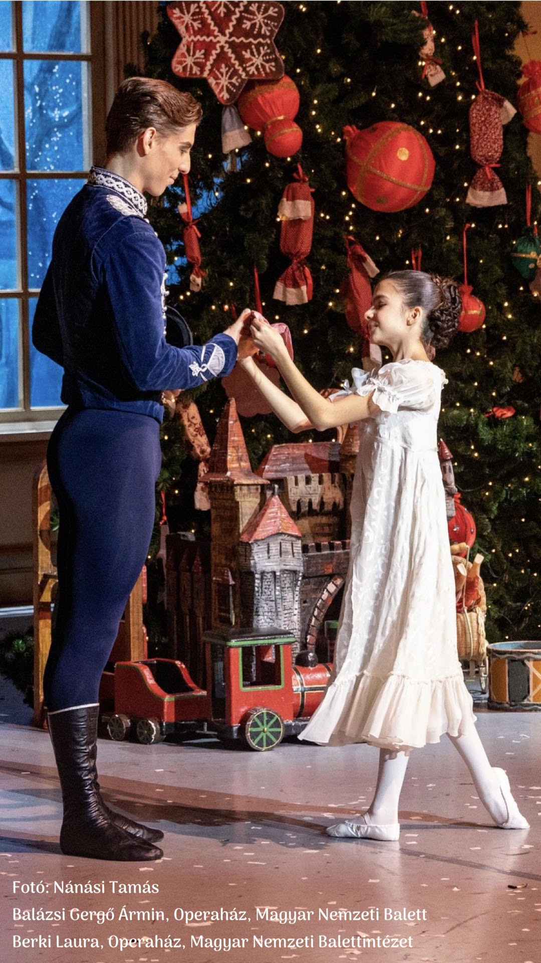 Amióta a Balettintézetben vagyok minden évben szerepeltem az Opera “A diótörő” produkciójában. Kiskatona szerepben kezdtem, ezt követte az egér, aztán a partikép jelenet egyik kislánya, végül tavaly nagy álmom vált valóra, amikor eltáncolhattam a főszereplő kislányt, Marikát.