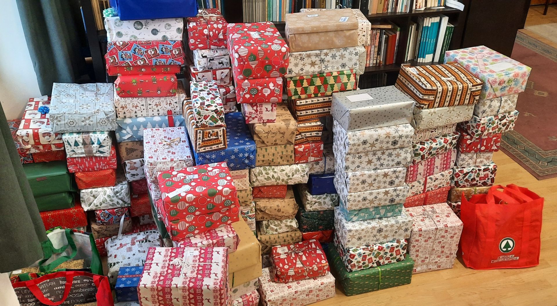 Idén összesen 221 db ajándék-cipősdobozt állítottunk össze, és szállítottunk el a Millenáris Park átvételi pontjára.