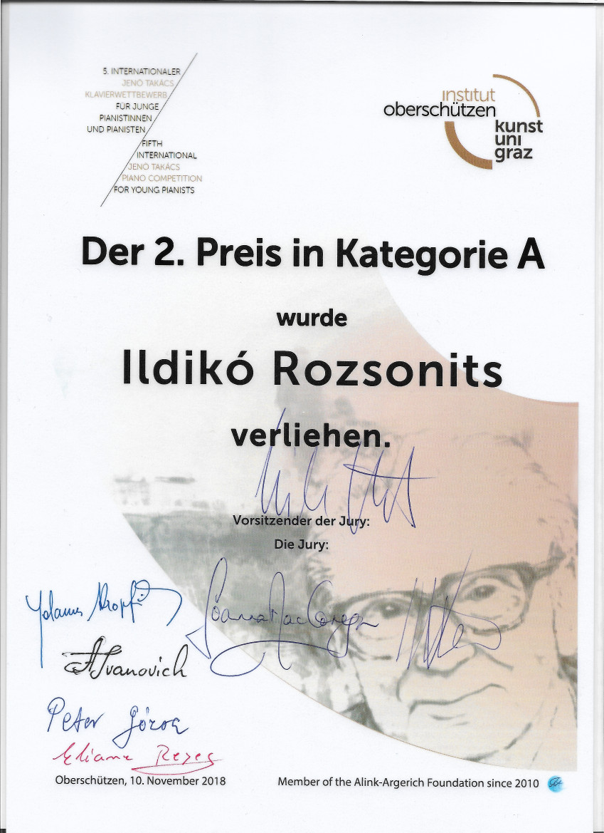 Ildikó az ausztriai Oberschützenben megrendezett 5. Takács Jenő Nemzetközi Zongoraversenyen lett második a 2006+ kategóriában.