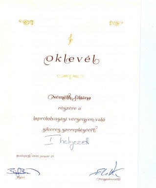 Németh Lilianna (1. a) győzött a Budapesti Laprólolvasási Versenyen barokk furulya kategóriában.