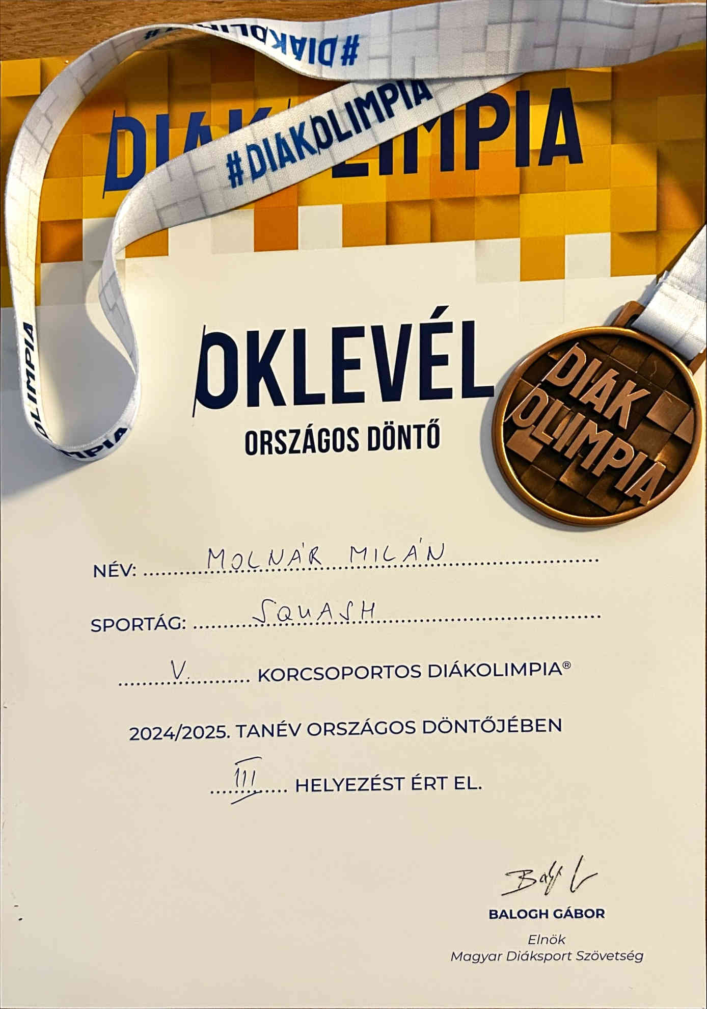A bronzmeccsen egy egri ellenfelem volt, akit már korábban is megvertem, és ez most se volt másképp, egy gyorsan 2-0-ra (11-1, 11-3) nyert meccs-csel. Összességében a körülményekhez képest meg vagyok elégedve az eredménnyel, és büszke vagyok arra, hogy az iskola neve alatt vehettem részt egy országos versenyen."