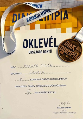 Molnár Milán (9. b) a harmadik helyen végzett!